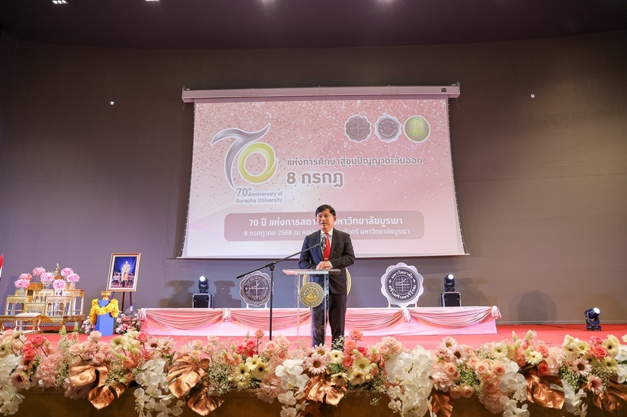 มหาวิทยาลัยบูรพา จัดงานวันสถาปนามหาวิทยาลัย ครบรอบ 70 ปี “8 กรกฏ” เมื่อวันที่ 8 กรกฎาคม 2568 ณ มหาวิทยาลัยบูรพา และบริเวณเขาสามมุข บางแสน จังหวัดชลบุรี เพื่อเฉลิมฉลองความเป็นมาของสถาบันอุดมศึกษาชั้นนำในภาคตะวันออก ซึ่งก่อตั้งขึ้นเมื่อปี พ.ศ. 2498 จากวิทยาลัยวิชาการศึกษา บางแสน โดยศาสตราจารย์ ดร.ธำรง บัวศรี และพัฒนาเป็นมหาวิทยาลัยบูรพาในปัจจุบัน ภายในงานมีกิจกรรมสำคัญตลอดทั้งวัน ช่วงเช้าประกอบด้วยกิจกรรมวิ่งประเพณี “เขาสามมุข” พิธีทำบุญตักบาตร พิธีสถาปนามหาวิทยาลัย พิธีมอบเครื่องราชอิสริยาภรณ์ พิธีมอบโล่ผู้มีอุปการคุณ และรางวัล “รัตนบูรพา” ประจำปี 2568 ส่วนช่วงบ่ายจัดนิทรรศการศิลปะ “Golden Bridges: 50 Years of Thai–China Friendship – BUU–WZU Art Exhibition 2025” ในการนี้ นายกสภามหาวิทยาลัย อธิการบดี คณะผู้บริหาร บุคลากร ศิษย์เก่า และนิสิตนักศึกษาเข้าร่วมงานอย่างพร้อมเพรียง สะท้อนถึงความภาคภูมิใจและความผูกพันต่อมหาวิทยาลัยในโอกาสครบรอบ 70 ปี