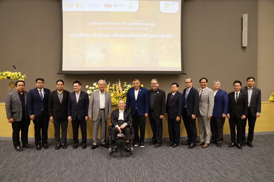 มหาวิทยาลัยบูรพา ร่วมกับมูลนิธิเสนาะ อูนากูล สำนักงานคณะกรรมการนโยบายเขตพัฒนาพิเศษภาคตะวันออก (EEC) และสถาบันวิจัยเพื่อการพัฒนาประเทศไทย (TDRI) จัดงานสัมมนาวิชาการประจำปี เมื่อวันที่ 22 กรกฎาคม 2568 ณ หอประชุมธำรง บัวศรี มหาวิทยาลัยบูรพา ภายใต้หัวข้อ “การพัฒนากำลังคนเพื่อขับเคลื่อน EEC อย่างยั่งยืน” การจัดงานมีวัตถุประสงค์เพื่อเผยแพร่ผลการศึกษา “รายงานการพัฒนากำลังคนเพื่อขับเคลื่อน EEC อย่างยั่งยืน” ให้สาธารณชนรับทราบสถานการณ์ ปัญหาและแนวทางพัฒนากำลังคนในพื้นที่ EEC ทั้งด้านคุณภาพและปริมาณ พร้อมเปิดเวทีแลกเปลี่ยนองค์ความรู้จากภาคส่วนที่เกี่ยวข้อง และสะท้อนทิศทางอนาคตกำลังคนไทยเพื่อเสริมขีดความสามารถในการแข่งขันระดับโลก ภายในงานได้รับเกียรติจาก รองศาสตราจารย์ ดร.วัชรินทร์ กาสลัก อธิการบดีมหาวิทยาลัยบูรพา กล่าวต้อนรับ ดร.ณรงค์ชัย อัครเศรณี ประธานมูลนิธิเสนาะ อูนากูล กล่าวเปิดงาน ดร.จุฬา สุขมานพ กล่าวปาฐกถาพิเศษ และรองศาสตราจารย์ ดร.ยงยุทธ แฉล้มวงษ์ นำเสนอรายงานสำคัญเกี่ยวกับแนวทางพัฒนากำลังคนเพื่อรองรับการพัฒนา EEC อย่างยั่งยืน. ” ข้อมูลจาก: เพจมหาวิทยาลัยบูรพา Burapha University