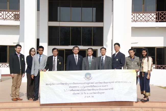 คณะผู้บริหารมหาวิทยาลัยบูรพาเยี่ยมคณะเศรษฐศาสตร์ มหาวิทยาลัยสุภานุวงษ์ แขวงหลวงพระบาง ประเทศสาธารณรัฐประชาธิปไตยประชาชนลาว ในโอกาสที่มอบหมายให้มหาวิทยาลัยบูรพาฝึกอบรมอาจารย์ เป็นเวลา 30 วัน ณ มหาวิทยาลัยบูรพา เมื่อวันที่ 18 มกราคม พ.ศ. 2556 “