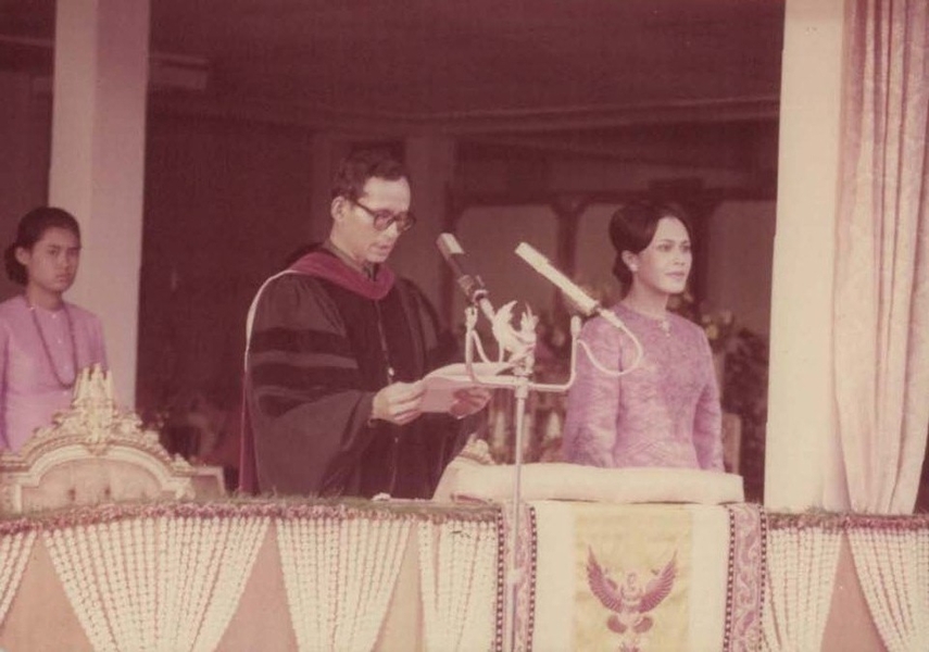 พระบาทสมเด็จพระเจ้าอยู่หัวเสด็จพระราชดำเนินพร้อมด้วยสมเด็จพระนางเจ้าพระบรมราชินีนาถ สมเด็จพระเทพรัตนราชสุดาสยามบรมราชกุมารีและสมเด็จพระเจ้าลูกเธอเจ้าฟ้าจุฬาภรณ์วลัยลักษณ์ เพื่อพระราชทานปริญญาบัตรแก่บัณฑิต ณ หอสมุด มหาวิทยาลัยศรีนครินทรวิโรฒ บางแสน เมื่อวันที่ ๓๐ มิถุนายน พ.ศ. ๒๕๑๙