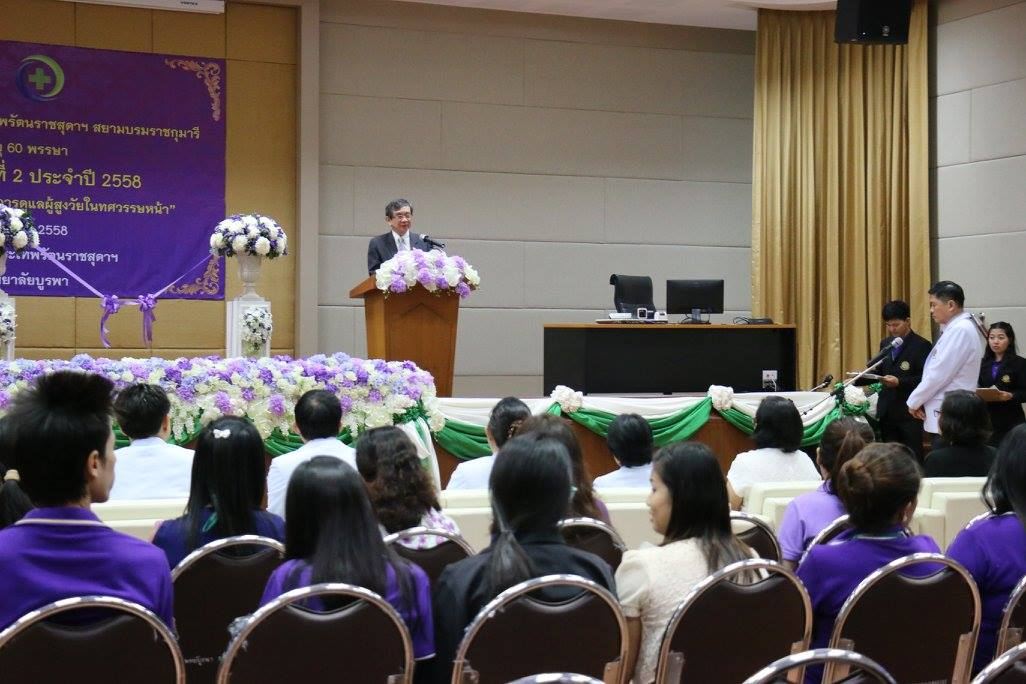 60 พรรษา “วิชาการแพทย์บูรพา” ครั้งที่ 2 ประจำปี พ.ศ. 2558 ภายใต้แนวคิด “ความพร้อมของสังคมไทยต่อการดูแลผู้สูงวัยในทศวรรษหน้า” เพื่อส่งเสริม สนับสนุน
