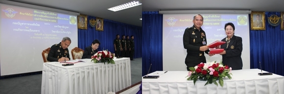 พิธีลงนามสัญญาจ้างที่ปรึกษาศึกษาวิจัยในการสำรวจทัศนคติของประชาชนที่มีต่อกองทัพไทย ประจำปีงบประมาณ 2555 ระหว่าง กองบัญชาการกองทัพไทย