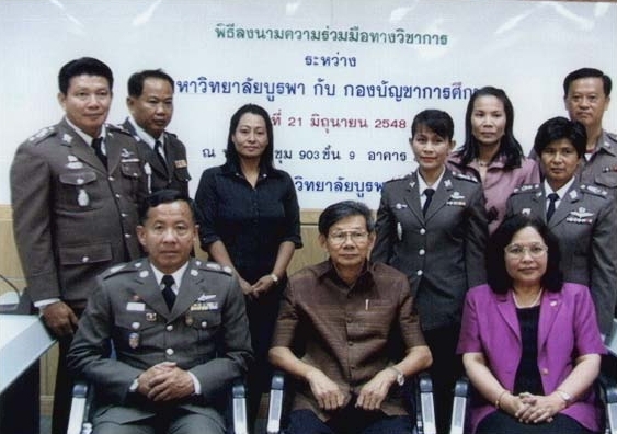 พิธีลงนามบันทึกข้อตกลงความร่วมมือทางวิชาการ ระหว่าง มหาวิทยาลัยบูรพา กองบัญชาการศึกษา เมื่อวันที่ 21 มิถุนายน พ.ศ. 2548 ณ ห้องประชุม 903ชั้น 9 อาคาร ภปร. มหาวิทยาลัยบูรพา