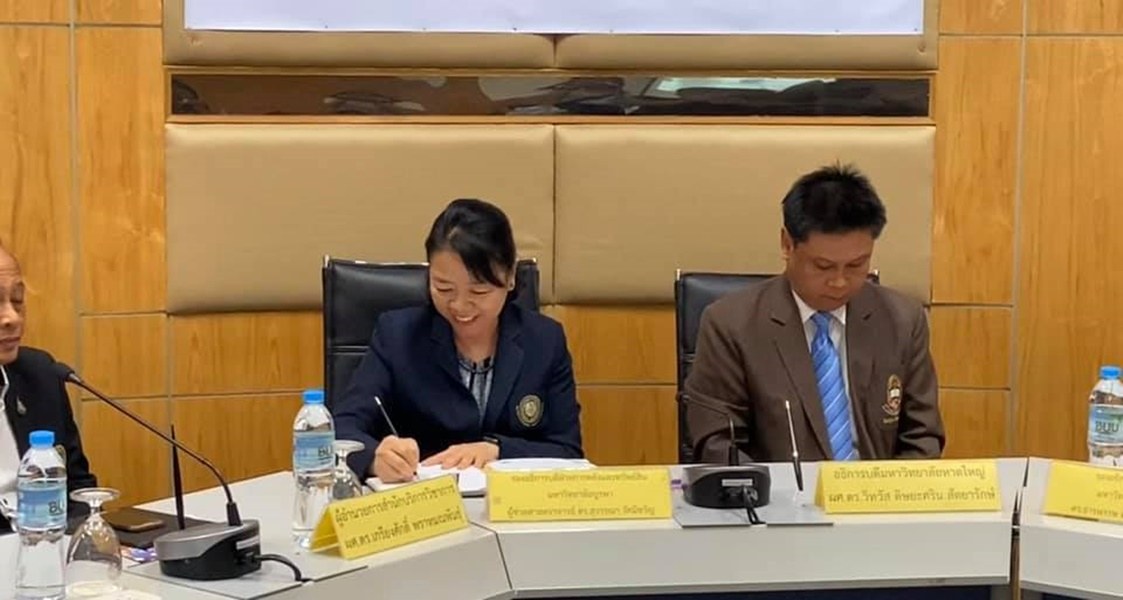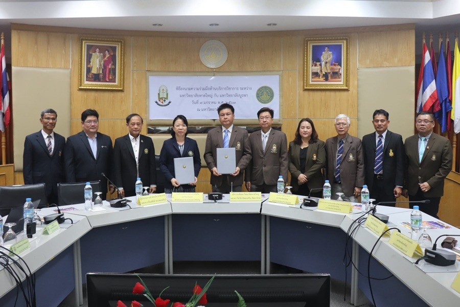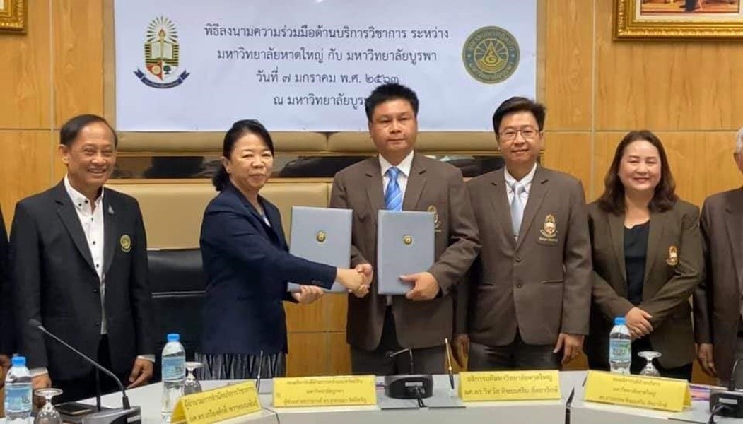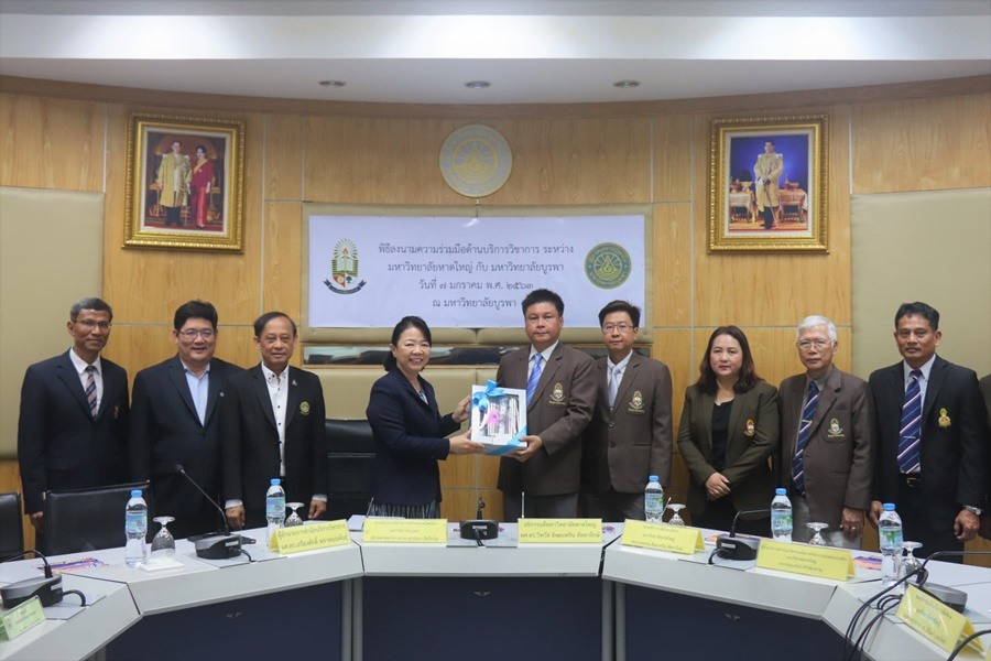 พิธีลงนามบันทึกข้อตกลงความร่วมมือทางวิชาการ ระหว่าง มหาวิทยาลัยหาดใหญ่ กับ มหาวิทยาลัยบูรพา โดยมีผู้ช่วยศาสตราจารย์ ดร.วิทวัส ดิษยะศริน สัตยารักษ์ ตำแหน่งอธิการบดีมหาวิทยาลัยหาดใหญ่ และผู้ช่วยศาสตราจารย์ ดร.สุวรรณา รัศมีขวัญ รองอธิการบดีฝ่ายการคลังและทรัพย์สิน เป็นประธานลงนามความร่วมมือทางวิชาการนี้ เพื่อสนับสนุนและส่งเสริมงานบริการวิชาการของมหาวิทยาลัยหาดใหญ่และมหาวิทยาลัยบูรพา ซึ่งเป็นการพัฒนาต่อยอดศักยภาพของทรัพยากรมนุษย์ในองค์กรภาครัฐและภาคเอกชนตลอดจนประชาชนในท้องถิ่นโดยการบูรณาการองค์ความรู้ของมหาวิทยาลัยไปสู่ชุมชนและสังคมอย่างเข้มแข็งและยั่งยืน ร่วมกันพัฒนา และจัดโครงการกิจกรรมบริการวิชาการและโครงการอื่น ๆ ร่วมกัน เสริมสร้างศักยภาพของทรัพยากรมนุษย์ของหน่วยงานภาครัฐและภาคเอกชนให้เกิดความเข้มแข็งร่วมกันแลกเปลี่ยนเรียนรู้ในการพัฒนาศักยภาพของบุคลากรภายในหน่วยงานในด้านการบริหารวิชาการร่วมกัน รวมถึงส่งเสริมและสนับสนุนการพัฒนาบุคลากรของทั้งสองสถาบัน โดยจัดให้มีการแลกเปลี่ยนเรียนรู้ในการดำเนินงานด้านบริการวิชาการร่วมกัน เมื่อวันที่ 7 มกราคม พ.ศ. 2563 ณ ห้องประชุม 903 สำนักงานอธิการบดี มหาวิทยาลัยบูรพา