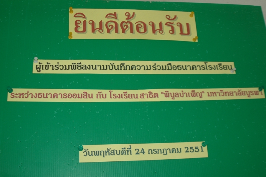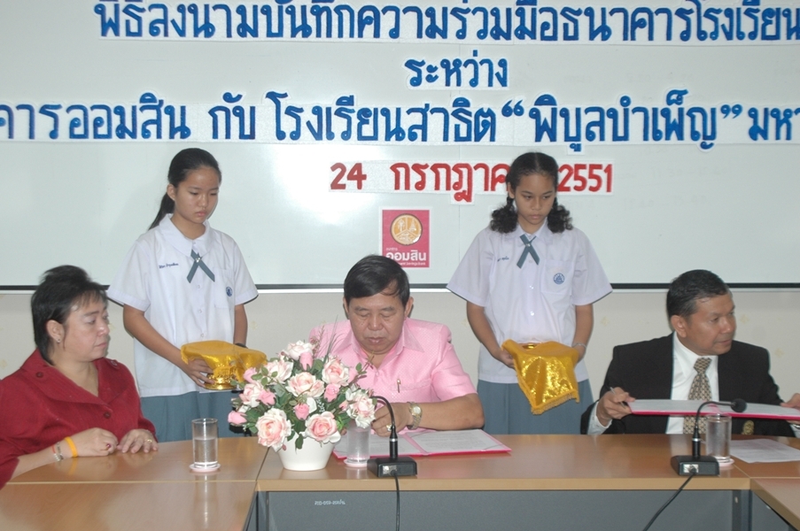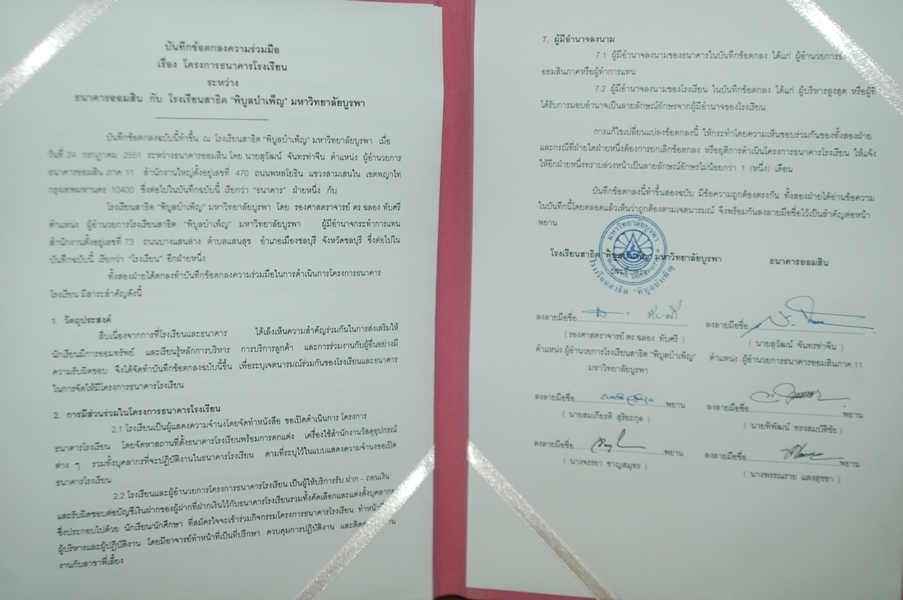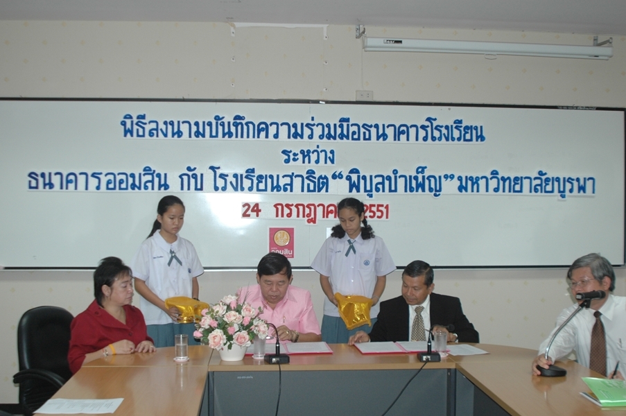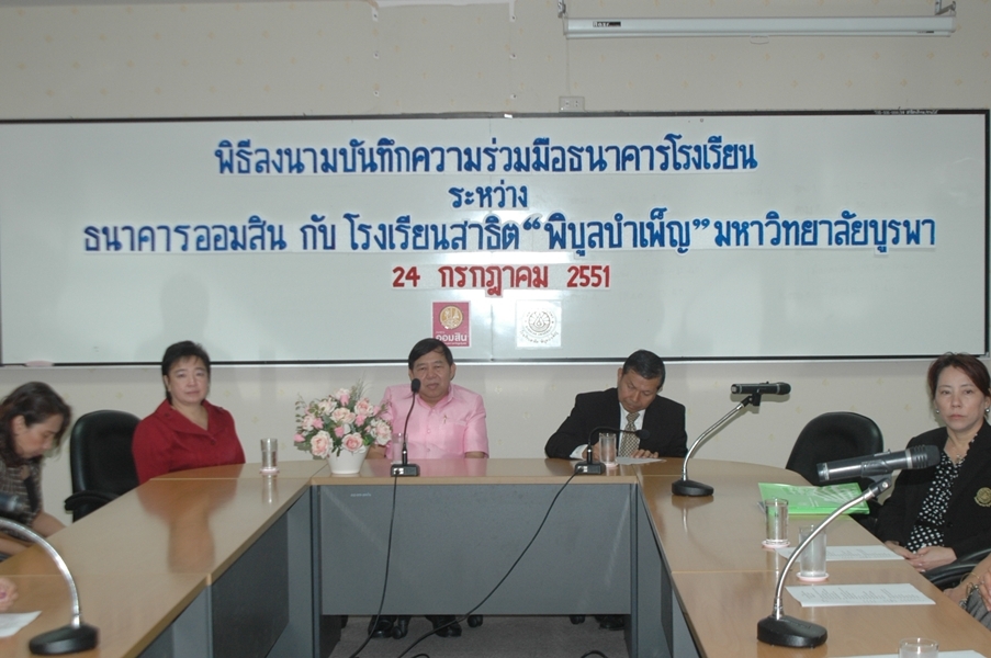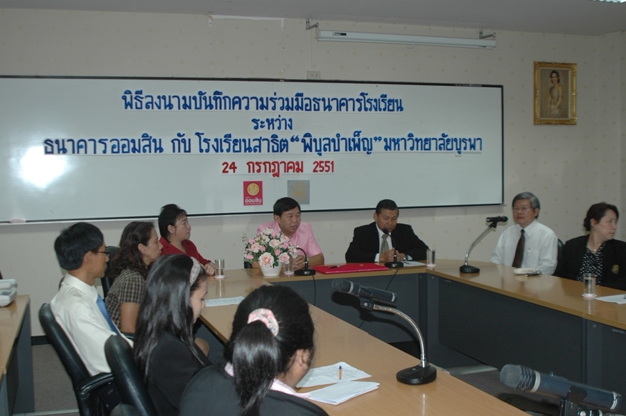 พิธีลงนามบันทึกข้อตกลงความร่วมมือทางวิชาการ ระหว่าง ธนาคารออมสิน กับธนาคารออมสิน กับ โรงเรียนสาธิต “พิบูลบำเพ็ญ” มหาวิทยาลัยบูรพา นำโดย