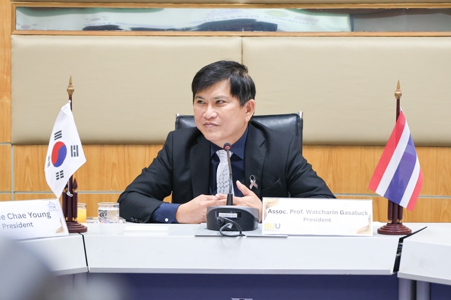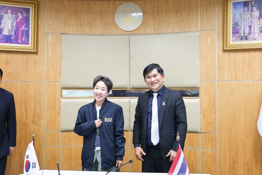มหาวิทยาลัยบูรพา ได้ลงนามบันทึกข้อตกลงความร่วมมือทางวิชาการกับ Daekyeung University สาธารณรัฐเกาหลี โดยมี รองศาสตราจารย์ ดร.วัชรินทร์ กาสลัก อธิการบดี เป็นประธานลงนามร่วมกับ President Lee Chae-young เมื่อวันที่ 25 พฤศจิกายน พ.ศ. 2568 ณ ห้องประชุม 903 ชั้น 9 สำนักงานอธิการบดี (อาคาร ภปร) มหาวิทยาลัยบูรพา เพื่อมุ่งพัฒนาด้านวิชาการ การวิจัย การแลกเปลี่ยนเรียนรู้ และการต่อยอดองค์ความรู้ด้านเทคโนโลยี รวมถึงเสริมสร้างเครือข่ายความร่วมมือในระดับนานาชาติในระยะยาว ภายหลังพิธีลงนาม คณะผู้บริหารได้เข้าเยี่ยมชม Tourism Innovation Lab (TIL) คณะบริหารธุรกิจ และสถาบันวิทยาศาสตร์ทางทะเล พร้อมแลกเปลี่ยนของที่ระลึกและถ่ายภาพร่วมกัน