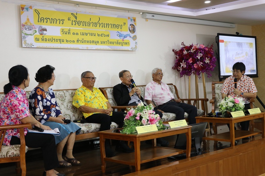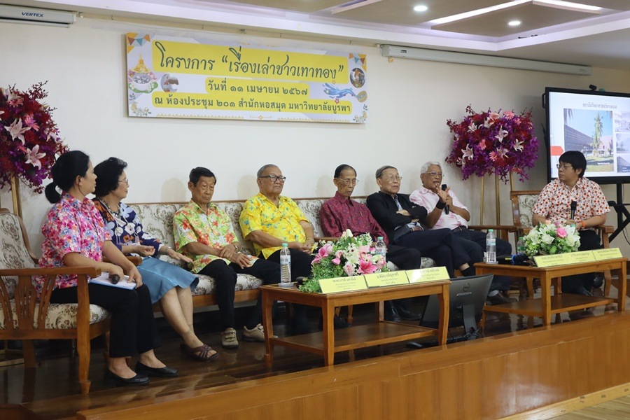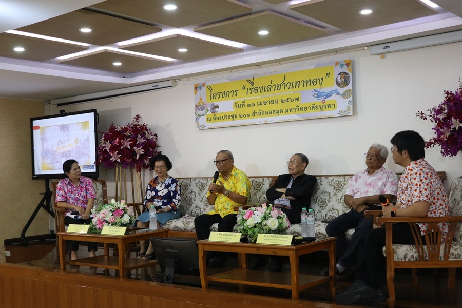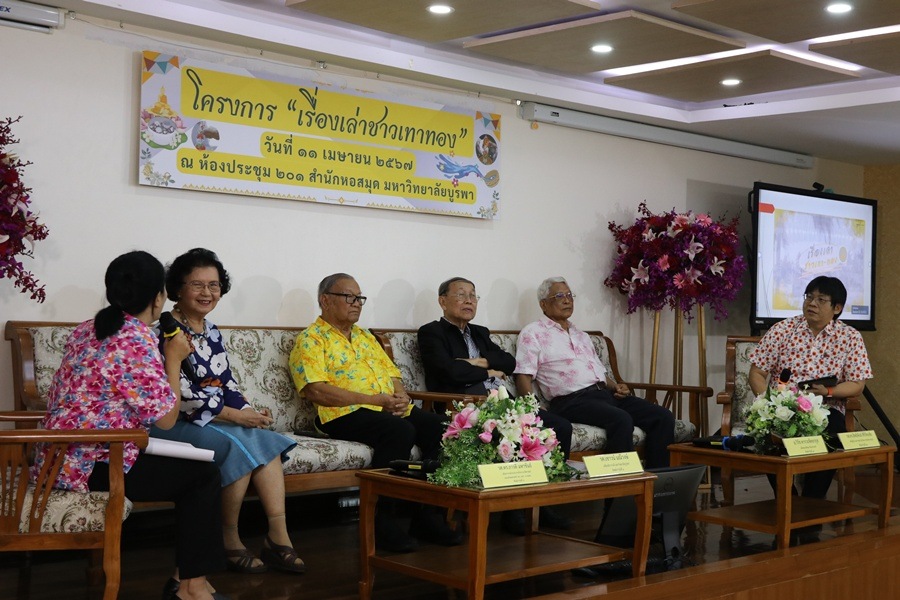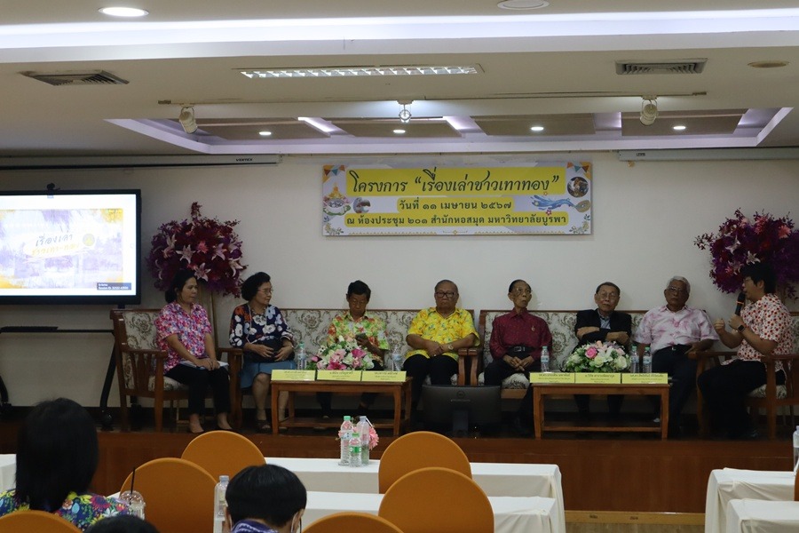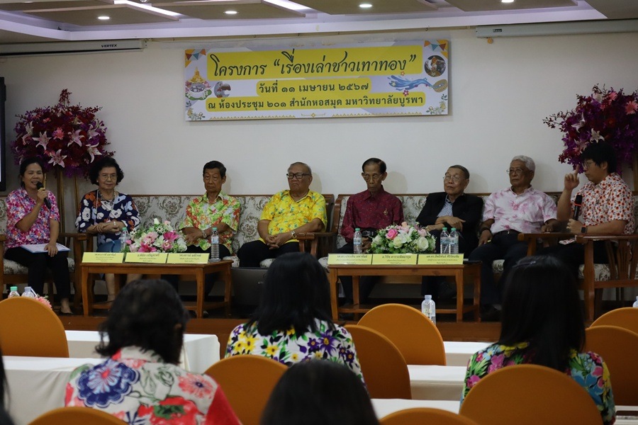 สำนักหอสมุด มหาวิทยาลัยบูรพา จัดกิจกรรมเสวนาเรื่องเล่าชาวเทา-ทอง ภายใต้โครงการเรื่องเล่าชาวเทา-ทอง นำโดยอาจารย์เหมรัศมิ์ วชิรหัตถพงศ์