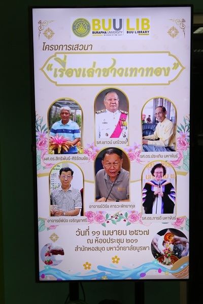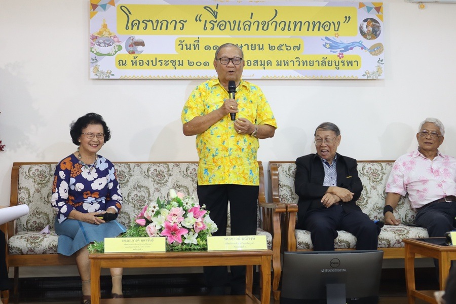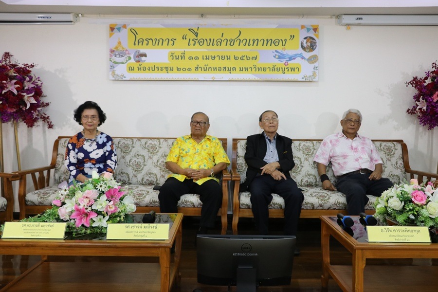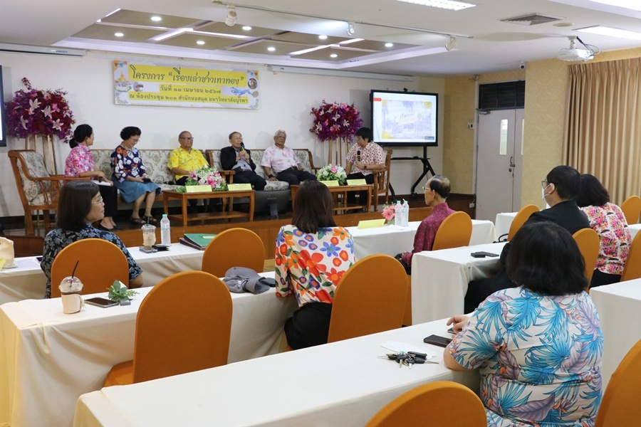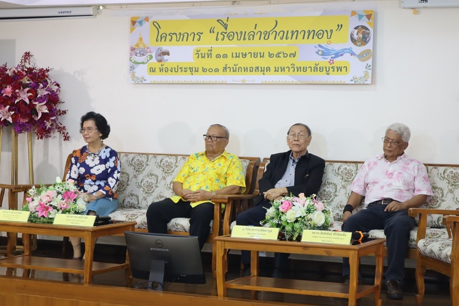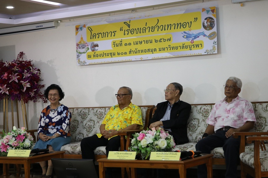 สำนักหอสมุด มหาวิทยาลัยบูรพา จัดกิจกรรมเสวนาเรื่องเล่าชาวเทา-ทอง ภายใต้โครงการเรื่องเล่าชาวเทา-ทอง นำโดยอาจารย์เหมรัศมิ์ วชิรหัตถพงศ์