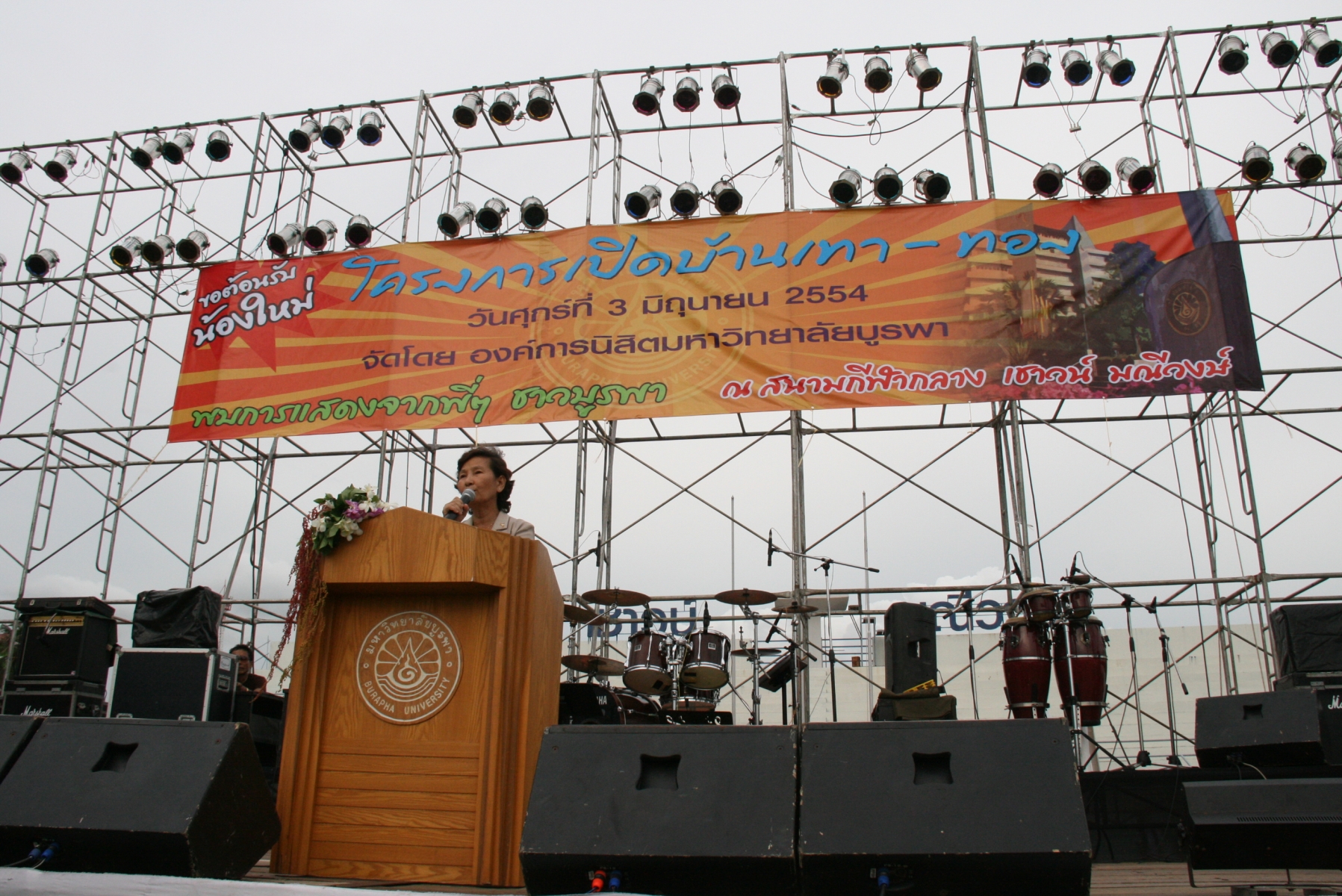 โครงการเปิดบ้านเทา-ทอง เพื่อต้อนรับนิสิตใหม่ได้รู้จักภายในมหาวิทยาลัยให้มากยิ่งขึ้น และรวมถึงการสร้างประสบการณ์ที่สร้างความสนุกสนานในชีวิตรั้วเทาทอง จัดโดย องค์การนิสิตมหาวิทยาลัยบูรพา เมื่อวันที่ 3 มิถุนายน พ.ศ. 2554 ณ สนามกีฬากลาง เชาวน์ มณีวงษ์